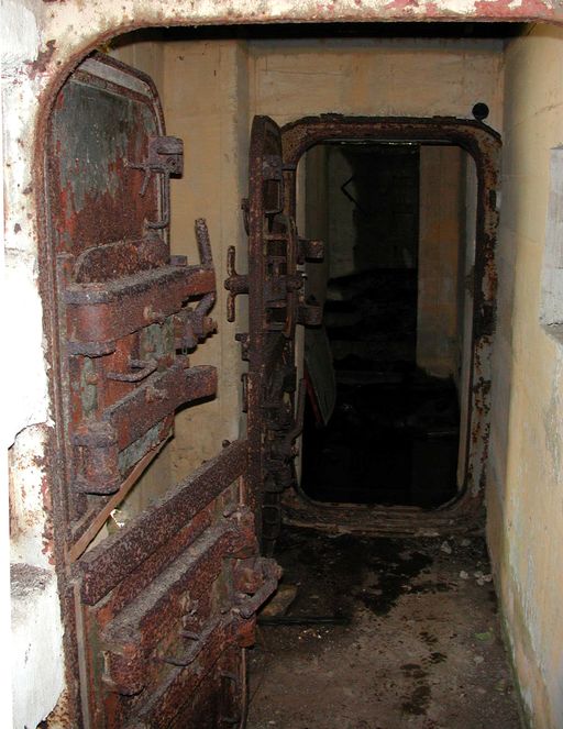 Vue du bunker de type 626 pour canon de 7,5 cm antichars (Pak 40) du parc à carburant de Maison Blanche : portes blindées de type marineImmatriculation