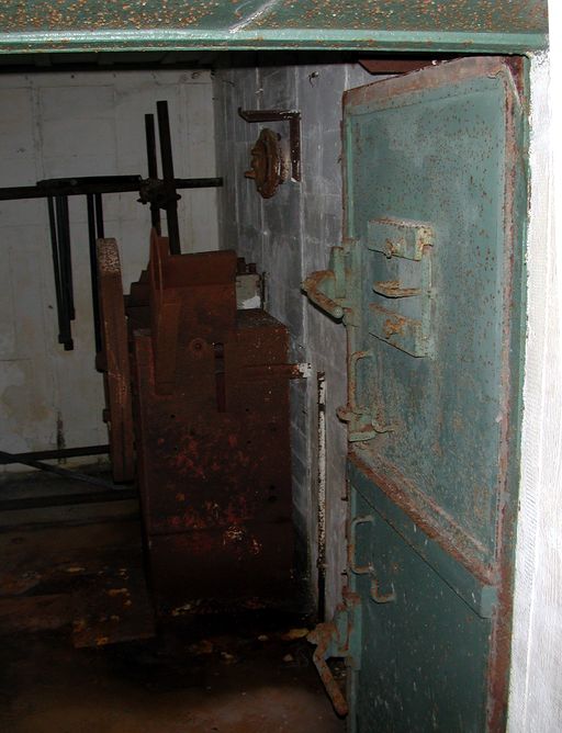 Vue intérieure : porte blindée à deux vantaux et équipements (état en 2003)Immatriculation