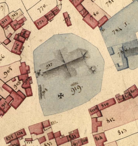 L'enclos paroissial en 1812. Extrait du cadastre, section B3 (A.D. Finistère, 3 P 279)Immatriculation