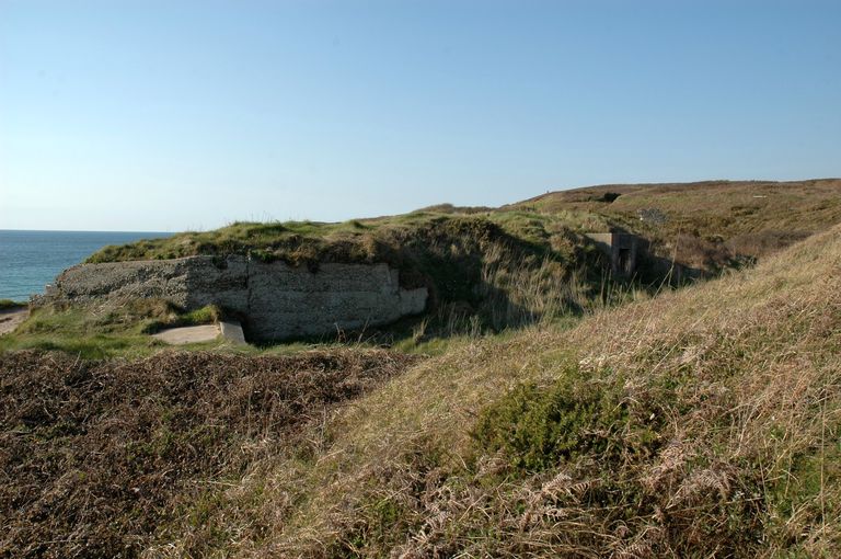 Vue des bunkers situés immédiatement au sud (état en 2006). Au premier plan, emplacement pour une pièce d'artillerieImmatriculation