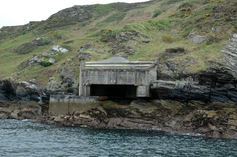 Roscanvel : vue générale du poste lance-torpilles de la pointe de Cornouaille. Situé au ras de l'eau, à l'est de la batterie de BeaufortImmatriculation