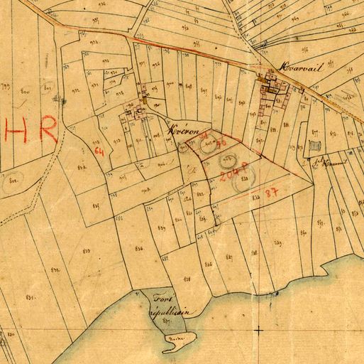 Plan de l'ensemble fortifié de Postolonnec autrefois appelé Fort Républicain, extrait du cadastre ancien de la commune de Crozon, 1831, Archives Départementales du FinistèreImmatriculation