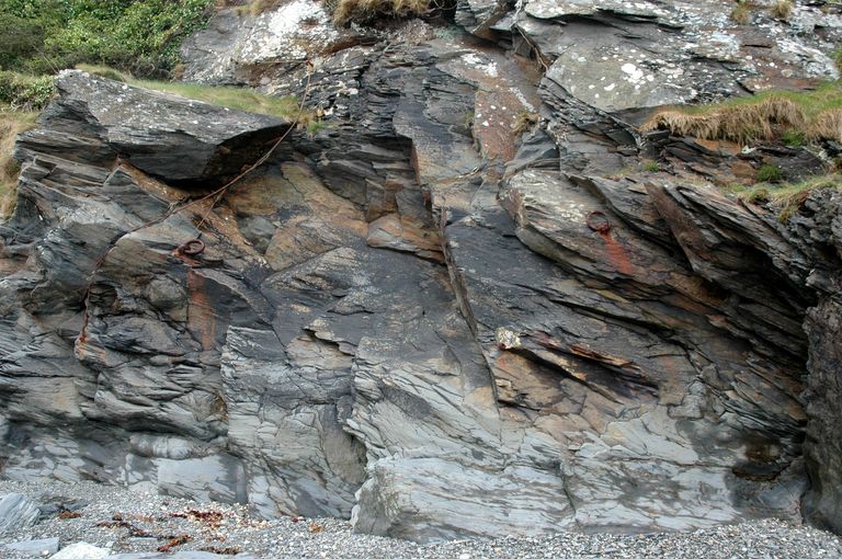 Vue de la grève au pied de la batterie casematée : organeaux fixés dans la falaise (état en 2006)Immatriculation