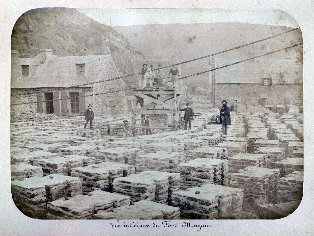 Vue du fort du Mengant en 1877 : chantier de construction du môle des torpilleursImmatriculation