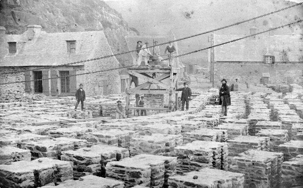 Vue du fort du Mengant en 1877 : chantier de construction du môle des torpilleursImmatriculation