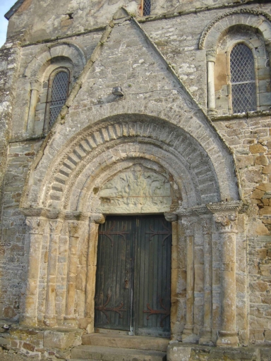 Lanmeur : église de l'ancien prieuré Notre-Dame de Kernitron, portail sud au tympan sculptéImmatriculation