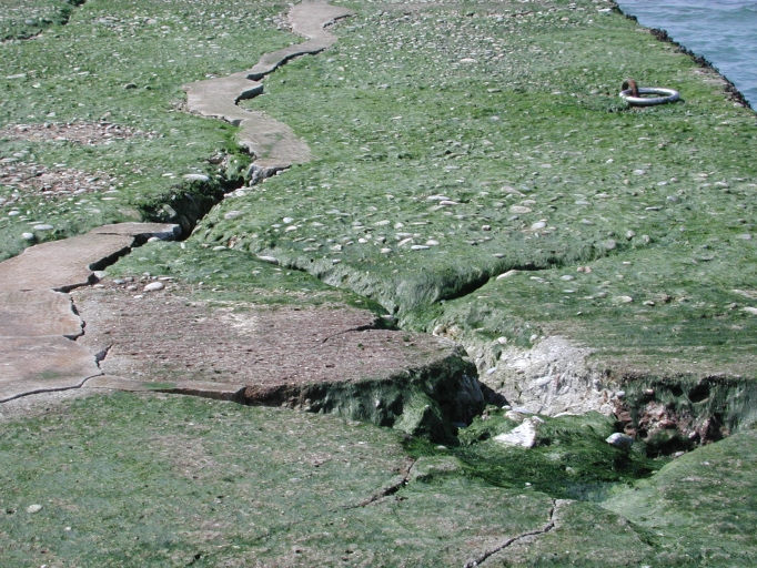 Vue de la partie supérieure de la cale sud lézardée à son extrémitéImmatriculation