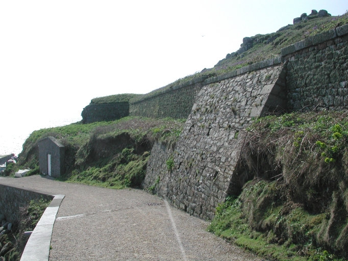 Le sentier élargi et entouré de murs de soutènement et de défenseImmatriculation