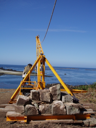 Utilisation d'une grue treuil en aplomb de la falaise (collection particulière)Immatriculation