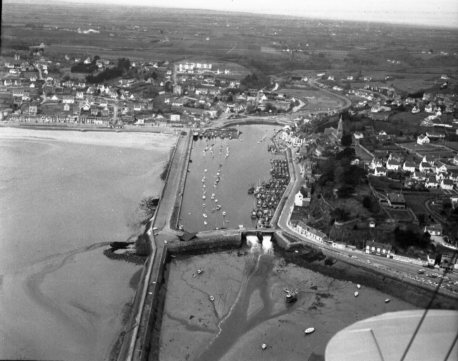 Vue aérienne du port de Binic à marée basse, vers1970 : remarquer le quai de Pordic prolongé (Fonds Joël, AD 22)Immatriculation