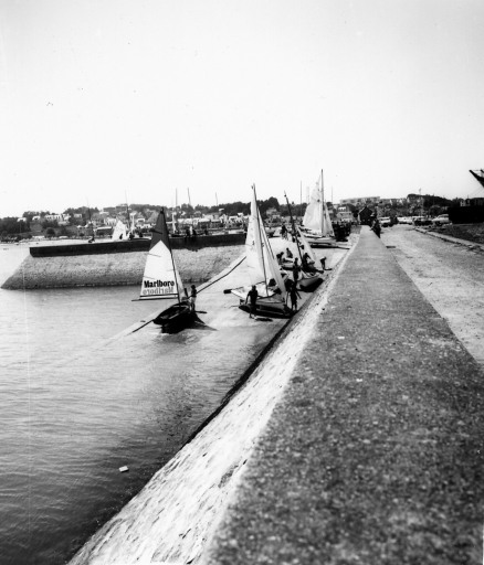 Le prolongement du quai de Pordic : remarquer l'ancienne forme en cône de la digue et la cale des dériveurs, vers 1970 (AD 22, fonds Joël)Immatriculation