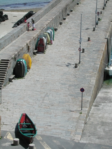 Vue de la jetée de Penthièvre : remarquer le pavage des pierres de revêtement et les bolards d'amarrage en graniteImmatriculation