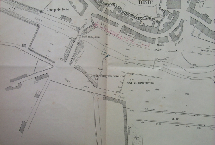 Plan du port de Binic en 1895 : remarquer le passage du chemin de circulation n° 1 (AD 22)Immatriculation
