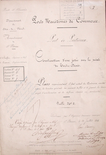 Plan n° 1 : projet de construction d'une jetée sur le rocher du Tertre Denis en 1854 (AD 22)Immatriculation