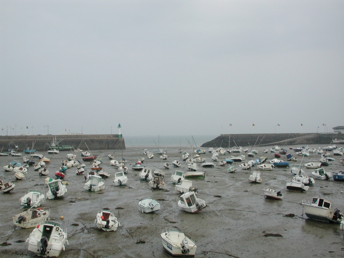 Vue du Portrieux à marée basse : un refuge pour la plaisance, remarquer la grande cale de la digue est enrochéeImmatriculation