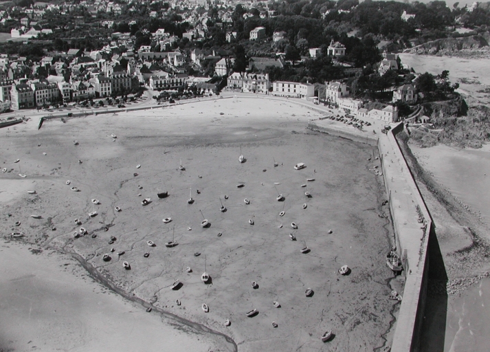 Vue générale de l'ancien port à marée basse, vers 1954 : remarquer l'absence de bateaux de pêche (AD 22, Fonds Henrard)Immatriculation