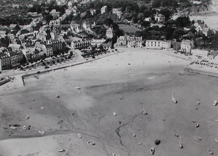 Vue générale de l'ancien port à marée basse, vers 1954 : remarquer le terre-plein des Douanes et les murs de quai devant la promenade (AD 22, Fonds Henrard)Immatriculation