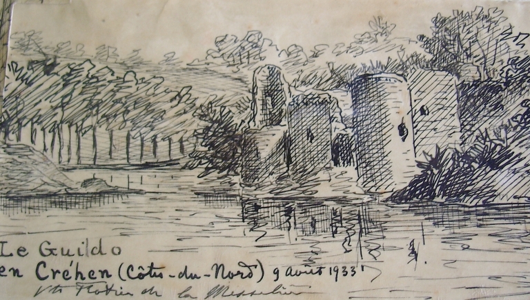 Le château du Guildo, croquis du vicomte Henri Frotier de La Messelière, 9 août 1933 (AD 22)Immatriculation