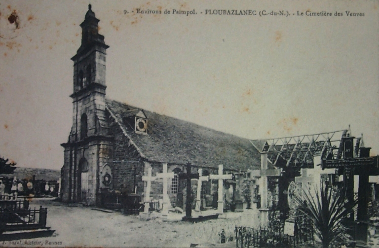 Vue générale de l'ancienne église paroissiale et du cimetière au début du 20ème siècle (AD 22)Immatriculation
