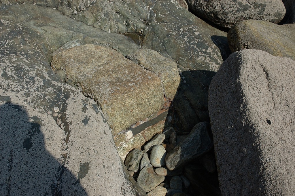 Vue des fondations de la batterie basse sur la grève à marée basse (état en 2005)Immatriculation