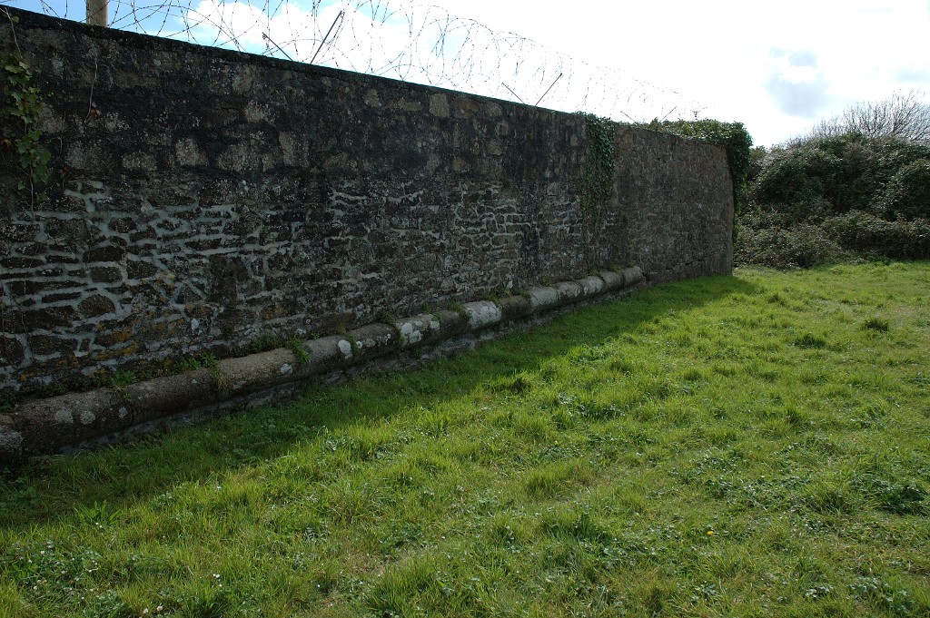 Vue de la partie haute du fort du Mengant : le cordon de magistral de l'escarpe règne au ras du sol (état en 2005)Immatriculation