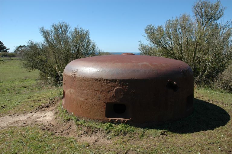 Vue de l'ensemble fortifié de la pointe du Renard : casemate de type 634 avec cloche blindée à 6 embrasures de type 20P7 (propriété privée)Immatriculation