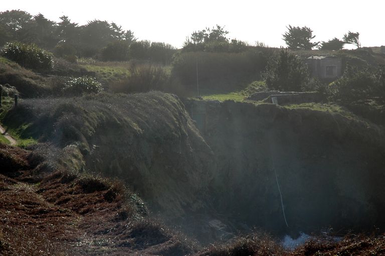 Vue de l'extrémité sud-ouest de la plage des Blancs Sablons : vestiges de la batterie de Treize et bunkersImmatriculation