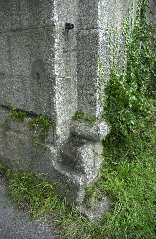 Vue de détail de la porte monumentale datée de 1878 : support en granite du pont-levis basculant (état en 2007)Immatriculation