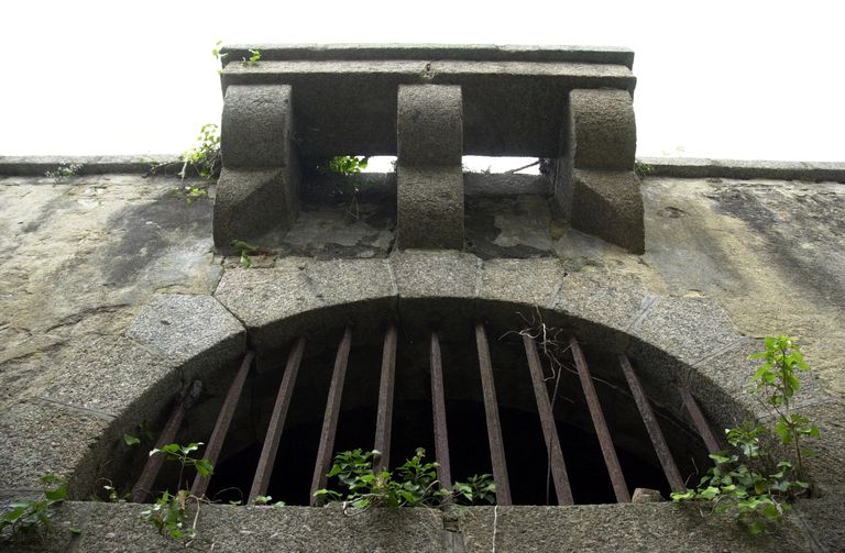 Vue du corps de garde crénélé n° 2 modifié de la pointe de Morgat ou Kador : façade est, baie et bretècheImmatriculation