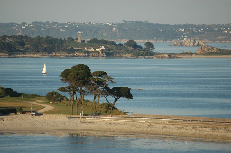 Vue de l'îlot Saint-Anne depuis le Champ de la Rive. En arrière plan : l'île Callot à Carantec et la côte de PlougasnouImmatriculation