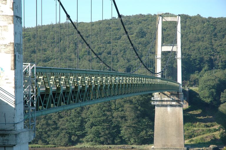 Rosnoën : vue du pont de Térénez (le premier pont de 1925-1926 détruit en 1944 est reconstruit entre 1945 et 1951)Immatriculation