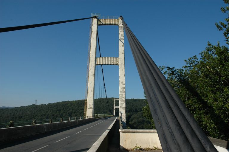 Rosnoën : vue du pont de Térénez (le premier pont de 1925-1926 détruit en 1944 est reconstruit entre 1945 et 1951)Immatriculation
