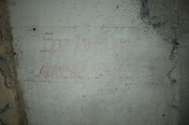 Vue intérieure : instructions de tir peintes à proximité de l'embrasures (état en 2007)Immatriculation