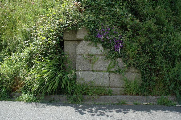 Vue du parc de Keranroux : vestiges d'un pilier en granite (état en 2007)Immatriculation