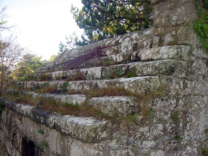 Vue de détail de la couverture en gradin de granite (état avant 2007)Immatriculation