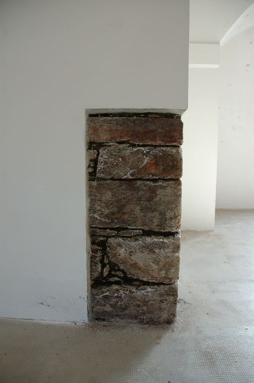 Vue intérieure : premier étage, maçonnerie révélée par le diagnostic (après piquage de l'enduit en ciment)Immatriculation