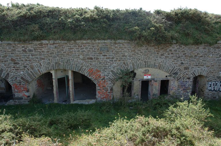 Vue de la cour et du casernement (état en 2007). Le réduit est daté par millésime de 1884Immatriculation