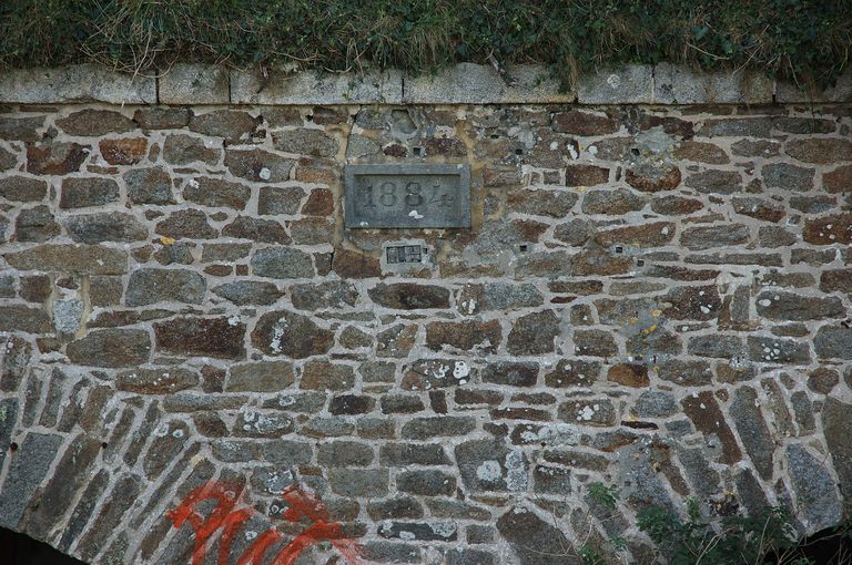 Vue du millésime 1884 gravée sur une pierre de taille de kersanton du casernement (état en 2007)Immatriculation