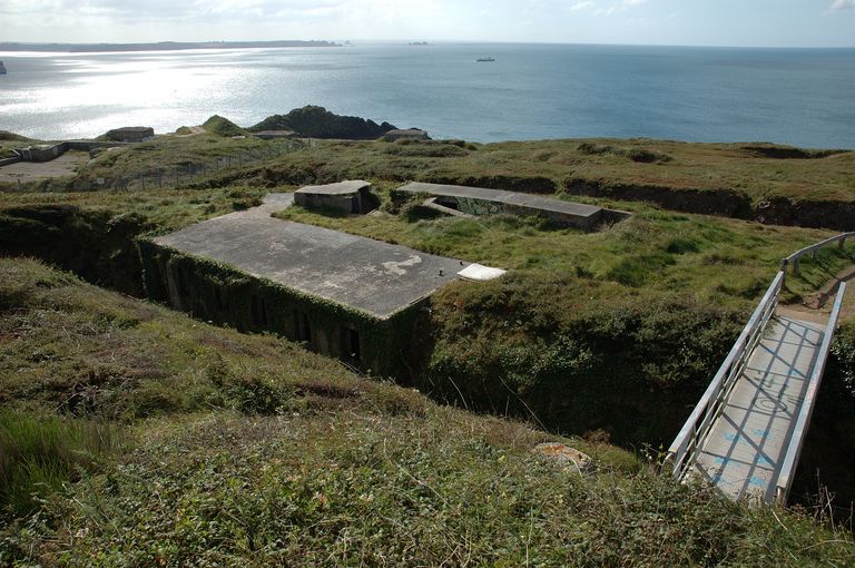 Vue du poste de commandement de groupe de Toulbroc'h implanté dans le fossé sec au sud-ouest (état en 2007). A droite, la passerelle permet de traverser le réduitImmatriculation