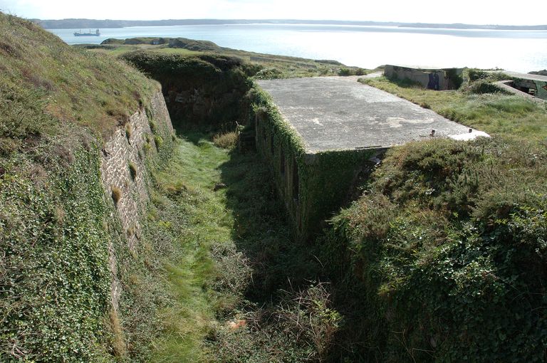 Vue du poste de commandement de groupe de Toulbroc'h implanté dans le fossé sec au sud-ouest (état en 2007)Immatriculation