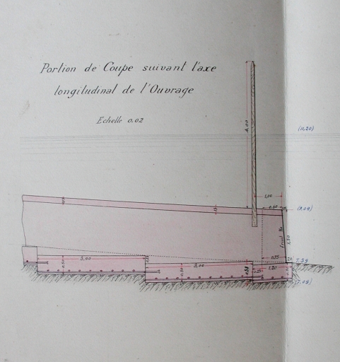 Dessin : portion de coupe suivant l'axe longitudinal de l'ouvrage, 1912 (AD 22)Immatriculation