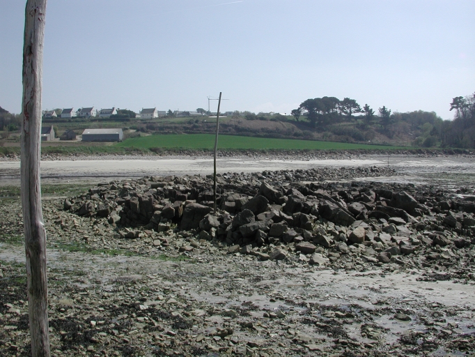 Vestiges de l'ancien brise-lames, balisé avec une percheImmatriculation