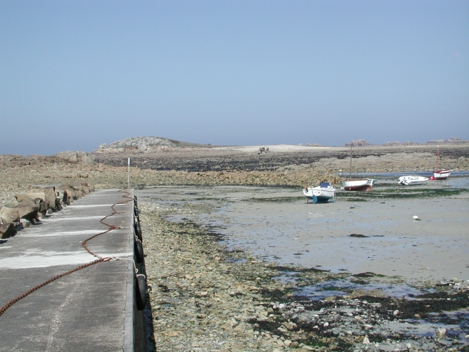 Vue de la cale de marée haute : remarquer la faiblesse de la penteImmatriculation