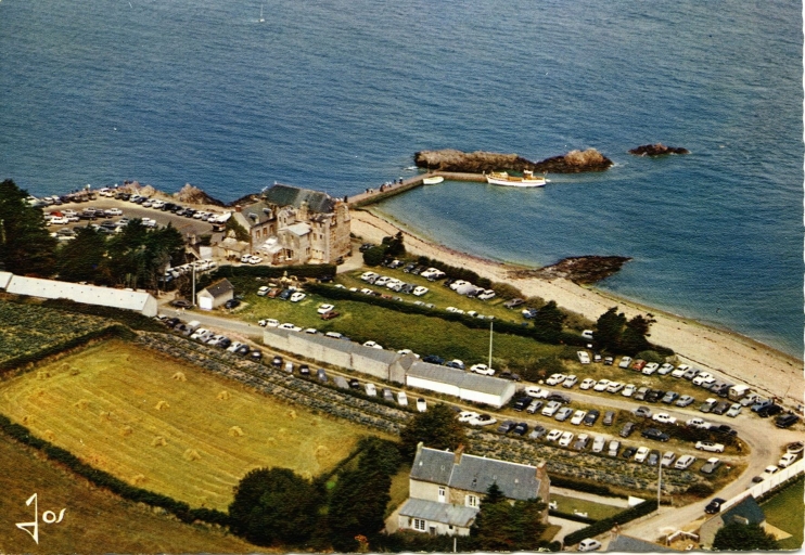 Vue aérienne du port de l'Arcouest, vers 1970 : remarquer les anciens garages et l'urbanisation progressive du port (AD 22, 16 Fi)Immatriculation