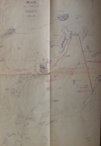 Plan daté de 1951 : projet d'élargissement et d'exhaussement des 2 cales et de réalisation d'un chemin surélevé entre le Castel et Roc'h Quionce (AD 22)Immatriculation