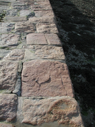 Vue de détail des pierres en arête de la cale OuestImmatriculation