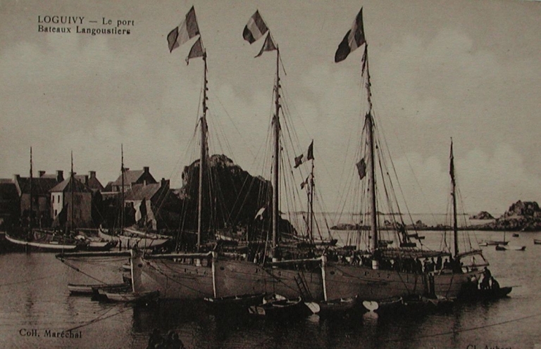 Les bateaux de pêche pavoisés au port de Loguiy, début 20ème siècle (carte postale, collection particulière)Immatriculation