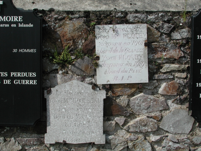 'Mémoire', en souvenir de Floury, péri en mer en 1901 à bord de la 'Glaneuse', à côté d'autres 'mémoires'Immatriculation