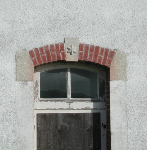 Vue de détail de la porte du bâtiment annexe des gardiens : remarquer l'étoile, symbole des phares et balises sur le linteauImmatriculation