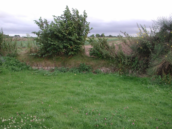 Vue des murets de pierres sèches qui ceinturent l'enclos où se trouve l'allée couverteImmatriculation